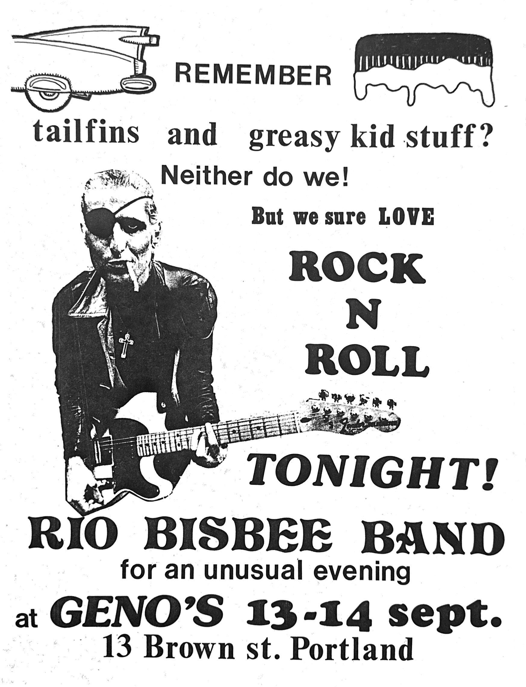 Not a professional organization, Rio Bisbee.Band is more an orgiastic confluence of talent and madness. Nevertheless, professional conduct is expected of players at all Bisbee times. Naturally we like to be well paid for the hard work involved in producing a rock ‘n roll show, and sometimes that happens. When there is money, every player receives an equal share, plus a share for the bus. However, the intent of Rio Bisbee.Band is never to remake commercially approved sounds for marketing purposes. The intent of Rio Bisbee.Band, its players, is to be technically innovative, musically co-operative, and provocatively creative in presenting the coolest original rock ‘n roll music.