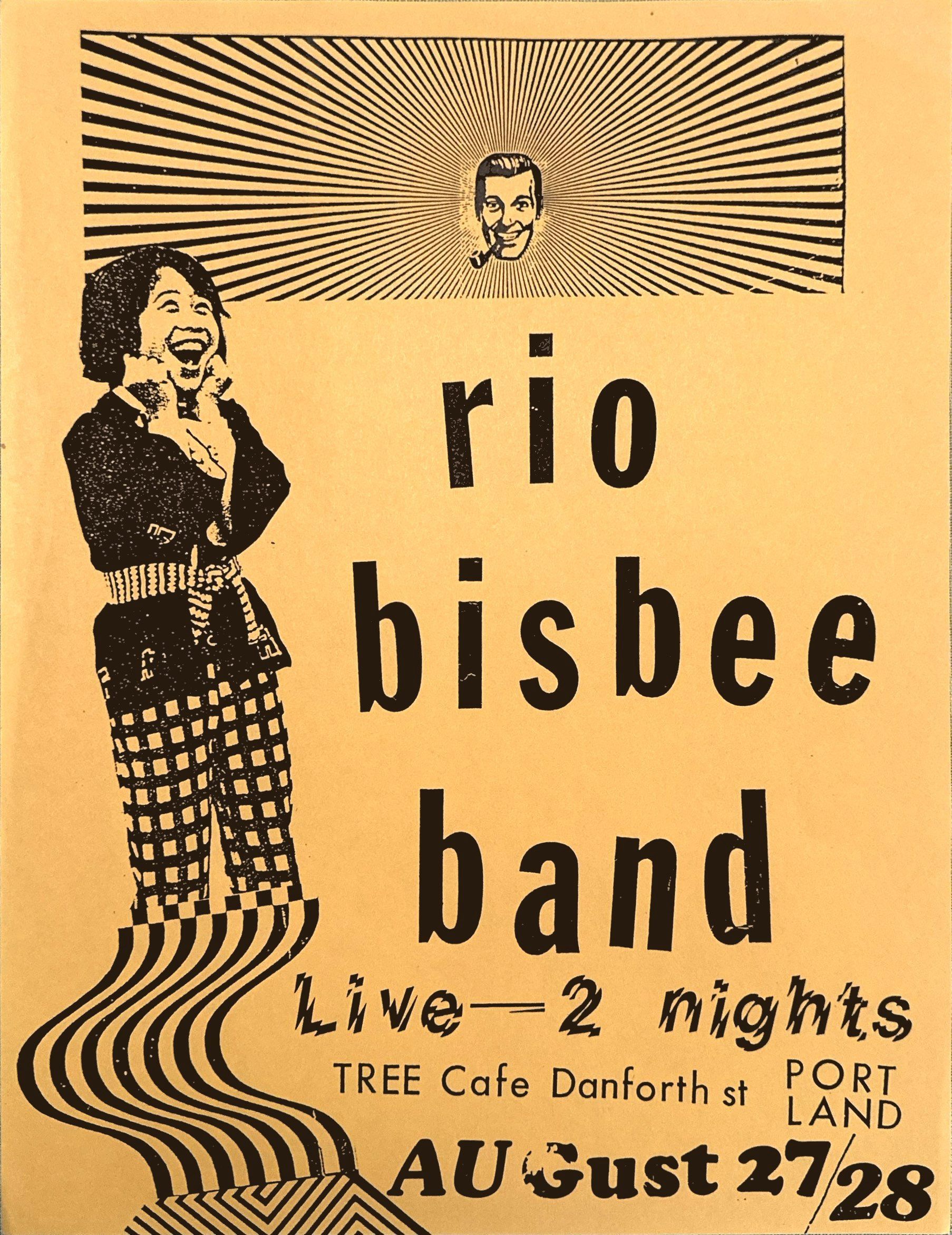 Annual family get-togethers became weekly rehearsals and recording sessions that eventually led to gigs at wild house parties, stinking underground clubs, mass outdoor events, hideous sectarian rituals, and live on-air performances with WERU and WMPG Community Radio. Rio Bisbee.Band is the original school of rock - graduating dozens of talented players over the years, many of whom went on to play in other great bands.