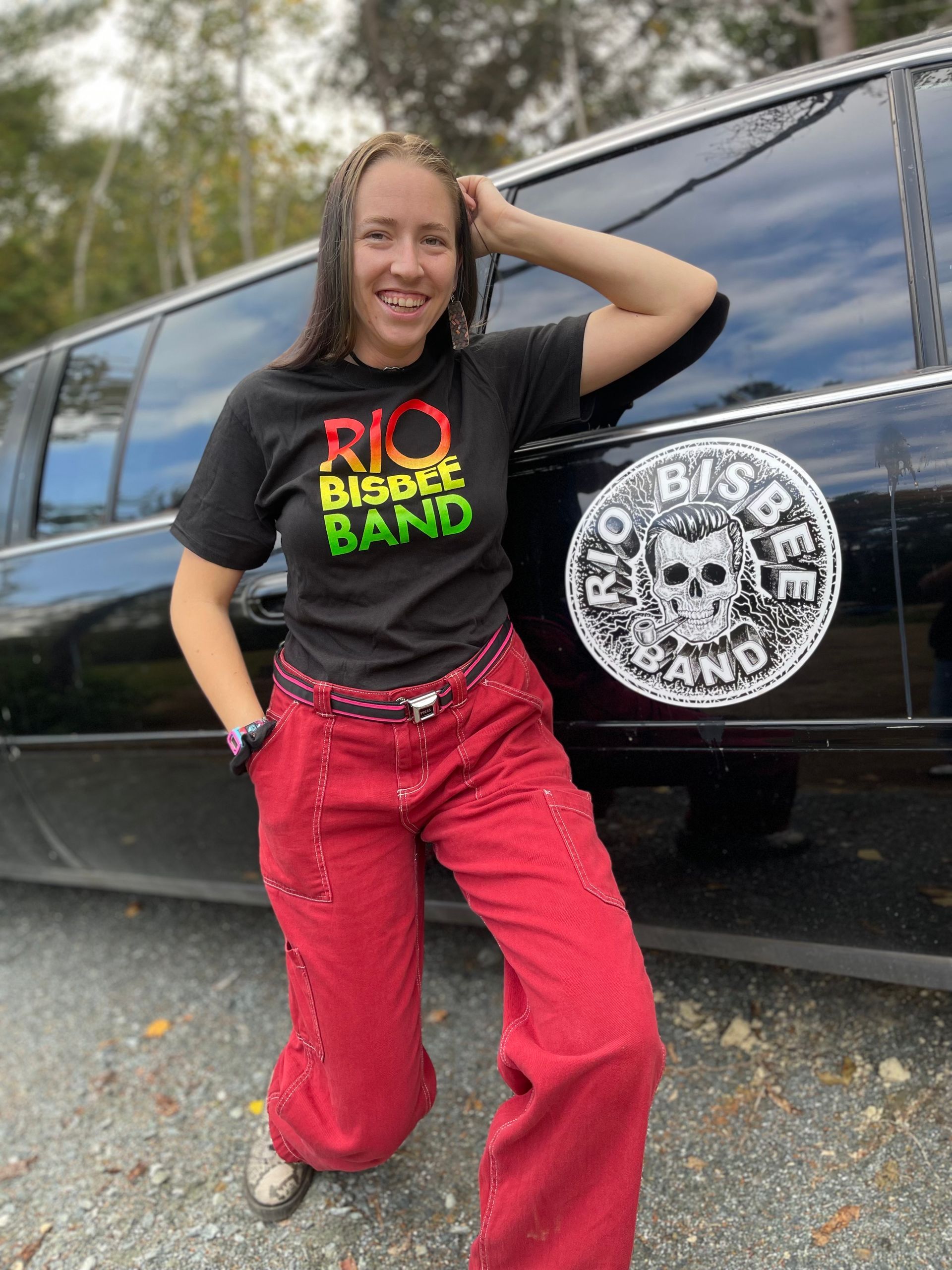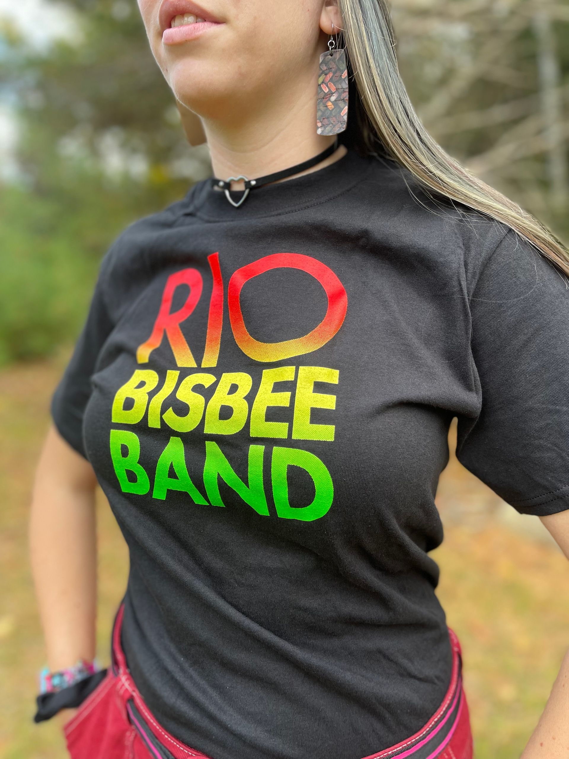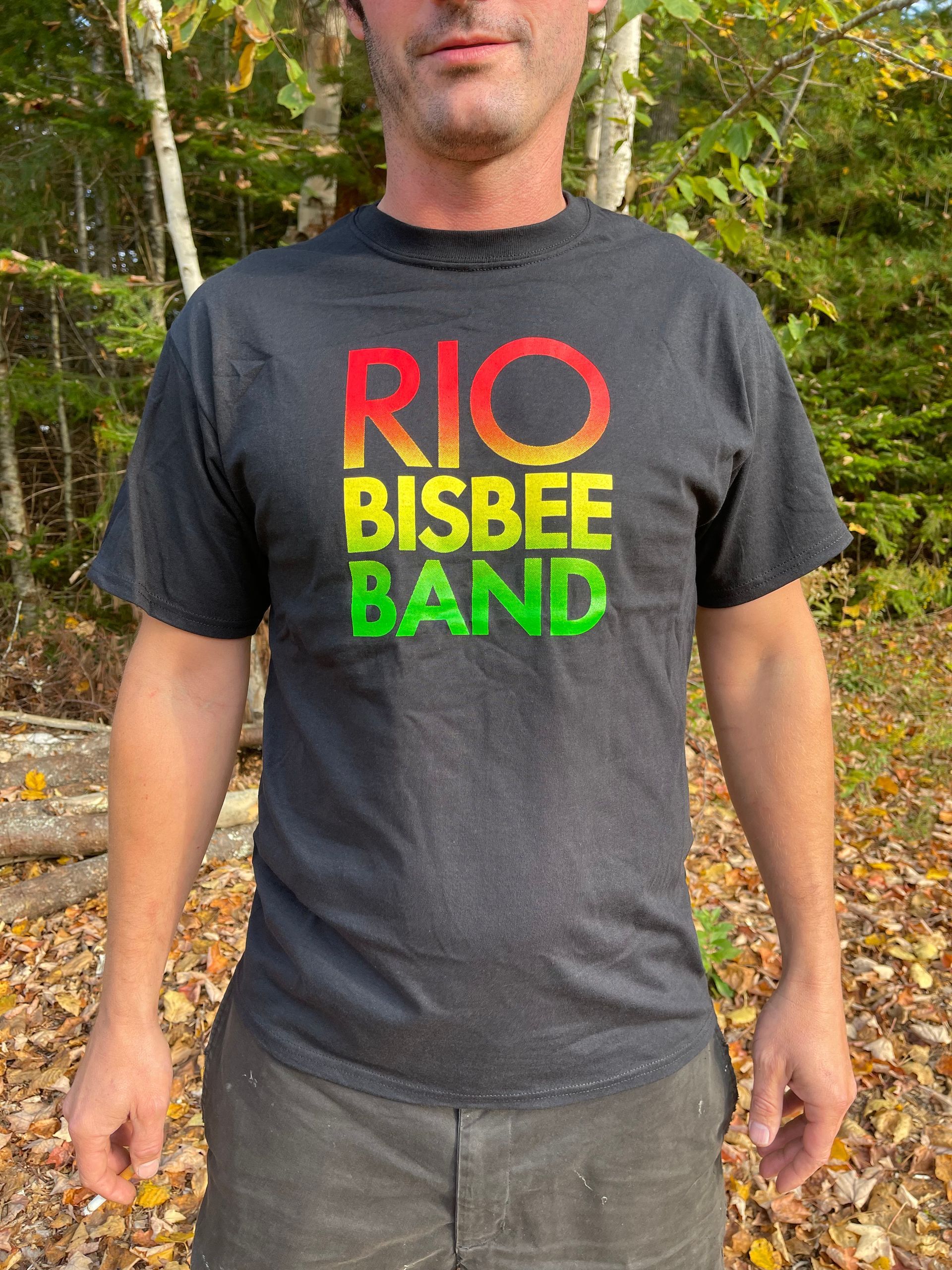 Rio Bisbee apparel - all cotton Ts and sweats with band slogan SMLXLXXL Black White Green Red Purple