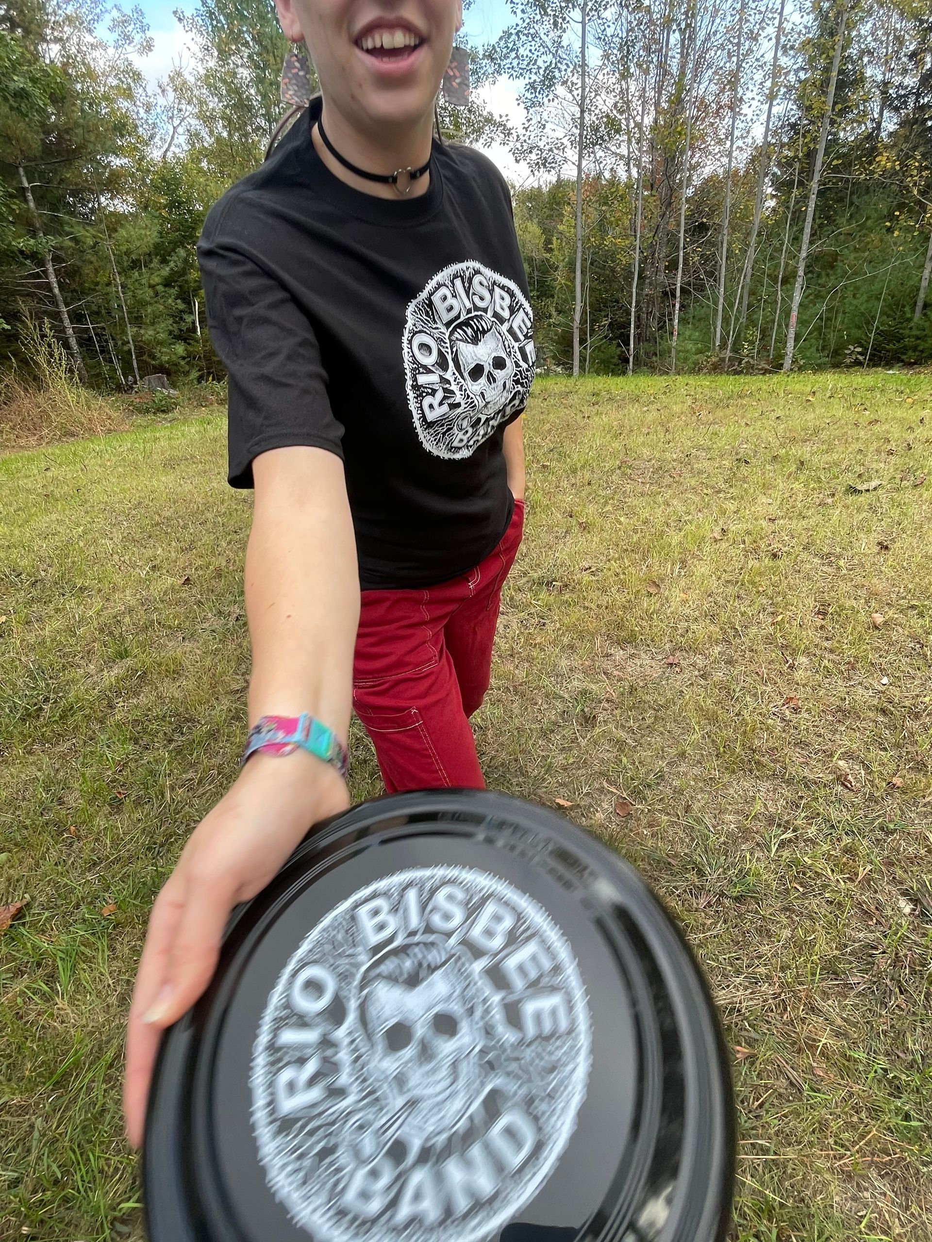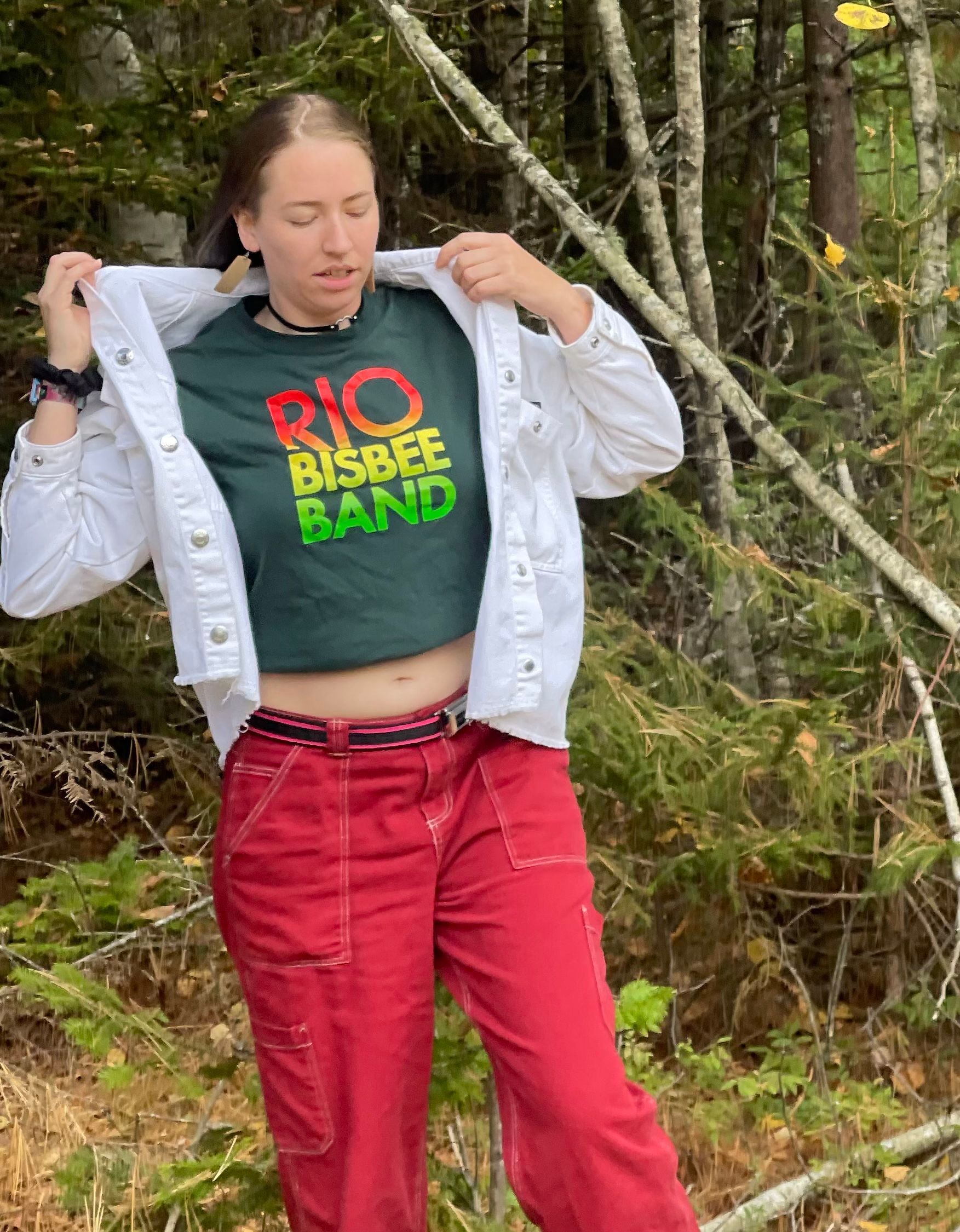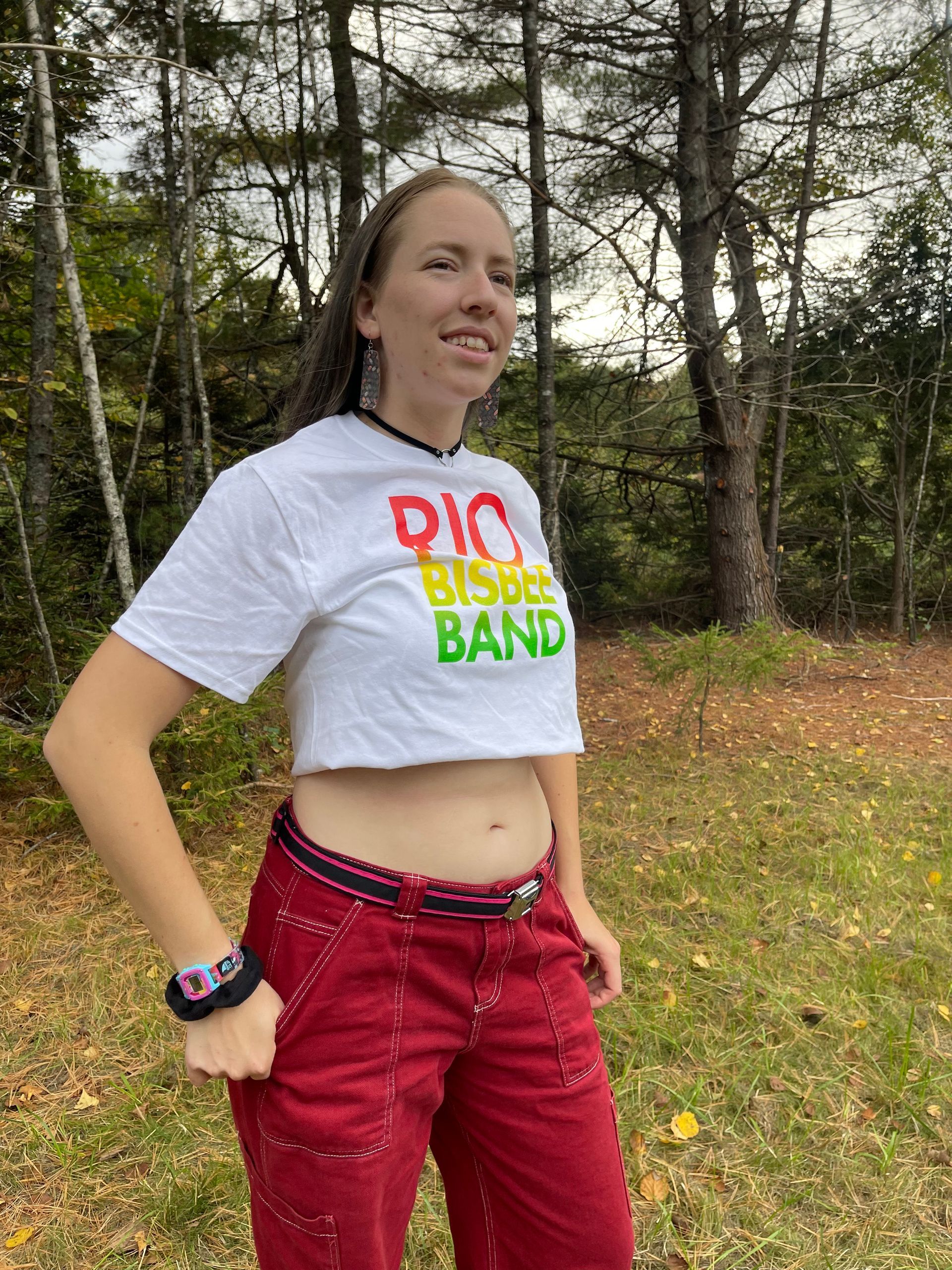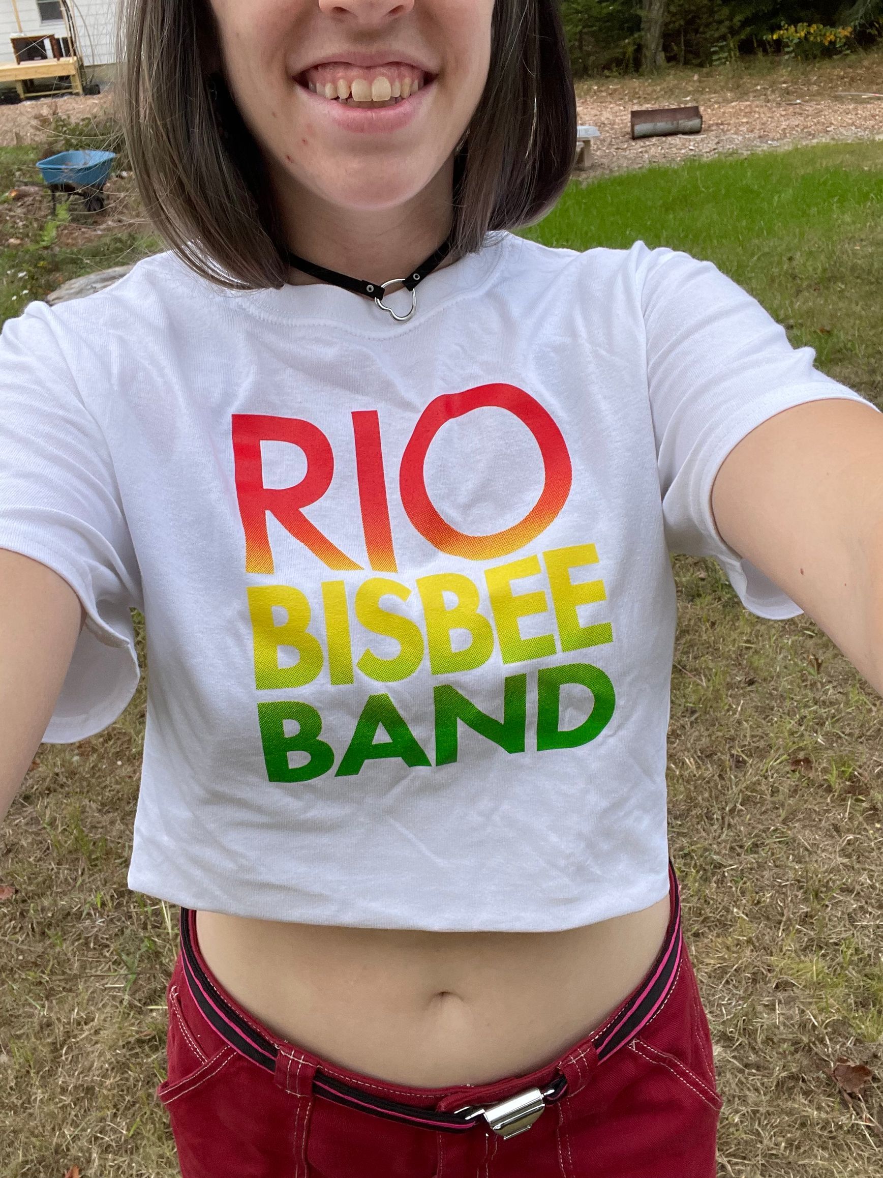 Rio Bisbee apparel - all cotton Ts and sweats with band slogan SMLXLXXL Black White Green Red Purple