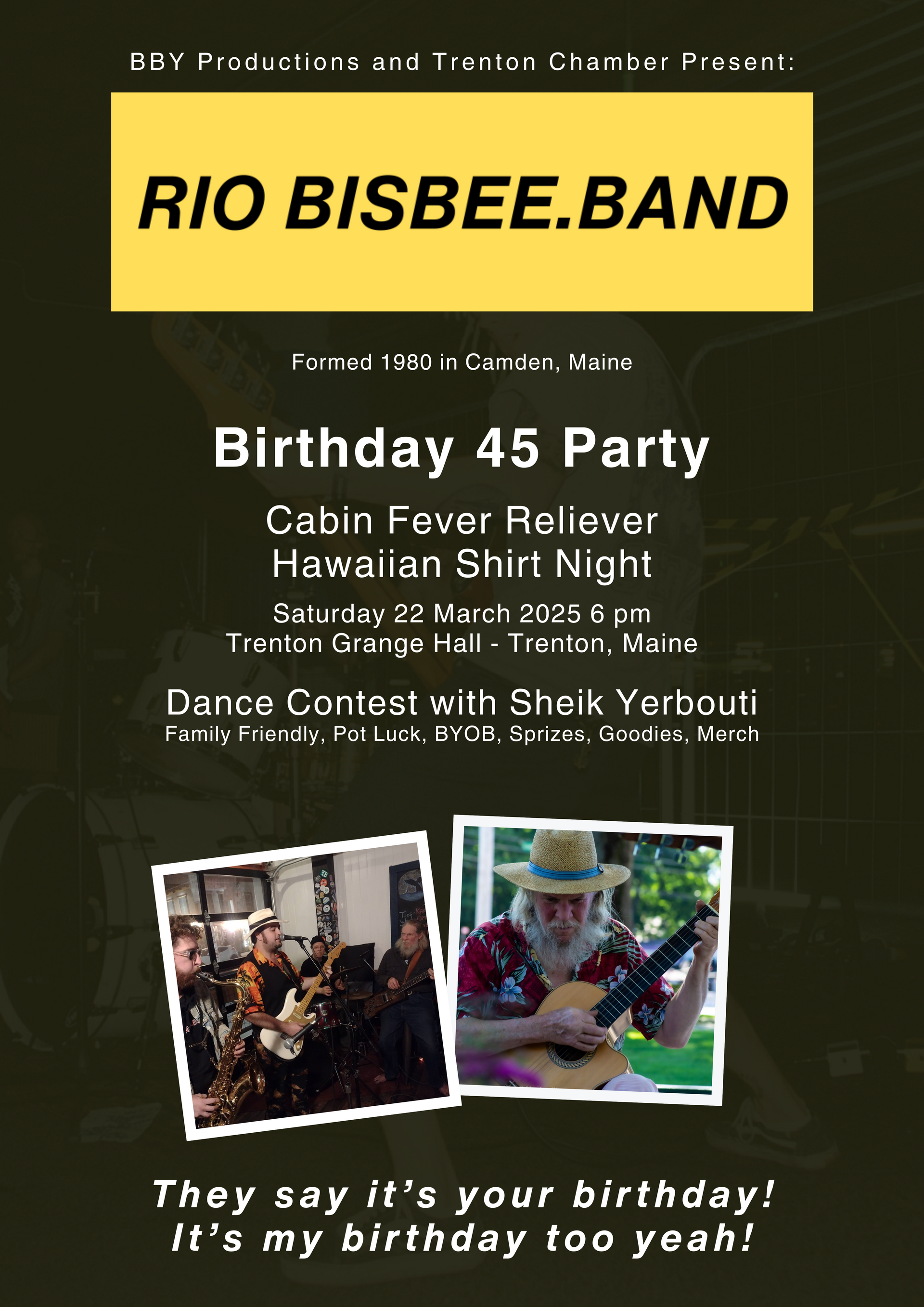 We can't shoot and play at the same time, so Rio Bisbee.Band depends upon Bisbee-Ites' photos of Rio Bisbee.Band performance to add to this gallery. If you have images or videos of Rio Bisbee.Band, please forward them to nikki@riobisbee.band.